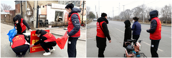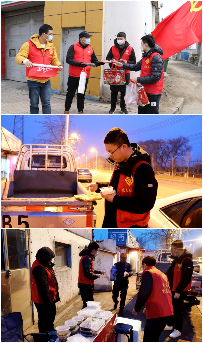 民主街道的工作人員為志愿者們及時送餐,保證大家吃上一口熱乎飯;工業(yè)公司黨支部為志愿者們準備了手套、暖寶寶、口罩等物品,滿足大家御寒需要。